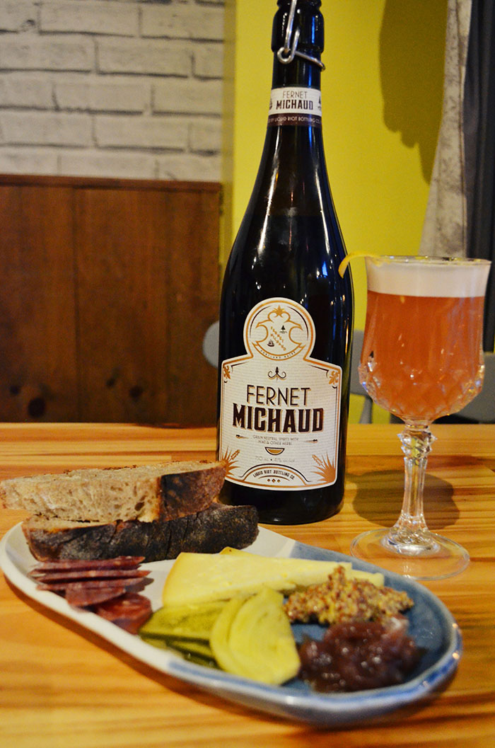 Located at the base of arguably Maine’s favorite ski mountain in Sugarloaf Village Center sits Alice & Lulu’s, an Alpine eatery and wine bar. They are best known for their European-inspired dishes that feature locally sourced ingredients including a large focus on Maine-made products. We are ecstatic to now be represented on that list. On their bar shelf is our Fernet Michaud, Dow’s Demise Dark Rum, and Old Port Single Malt, as well as soon to be our LRV 3 Year Blend. Keep reading to learn more about our LRV and see how well it pairs with their charcuterie, as well as their Head Bartender shares with us their newest drink recipe using our Fernet…