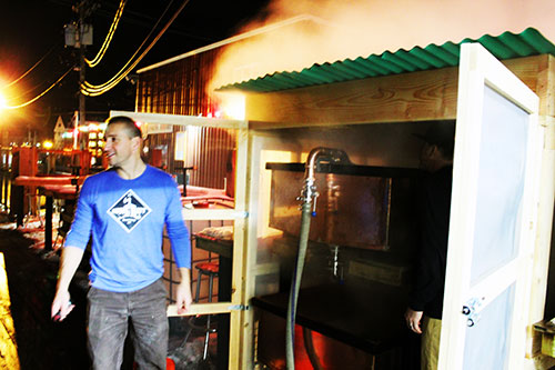 The Liquid Riot koelschip is one-of-a-kind. Not because it was designed and constructed by family. Rather because it’s the only koelschip designed to collect wild yeast at the edge of the Atlantic Ocean. We built our koelschip shanty right out back on the deck, overlooking the wharf. It’s a koelschip with a view, that gets to breath the yeast smorgasbord living in Portland Maine’s salty ocean breezes. Needless to say as we tuck this first batch into barrels to age for a few years, we’re excited to watch this seaside nod-to-lambic develop.