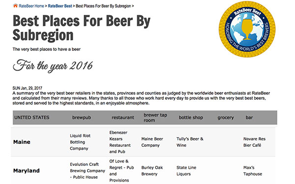09 Feb 2017 Rate Beer names Liquid Riot Maine’s Best Brewpub
