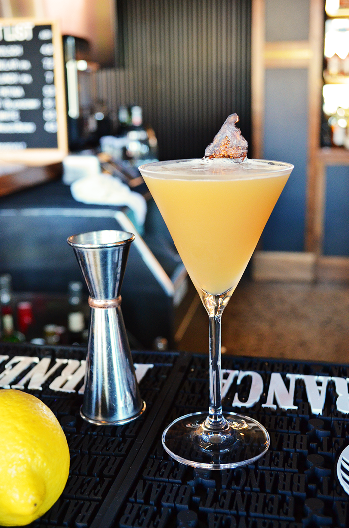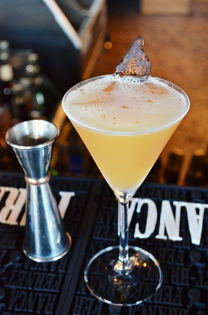 Shake and strain. Garnish with a slice of dried fig or a lemon swath